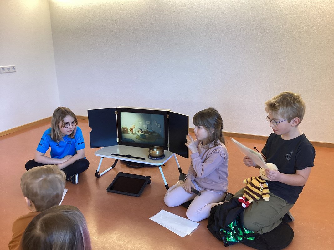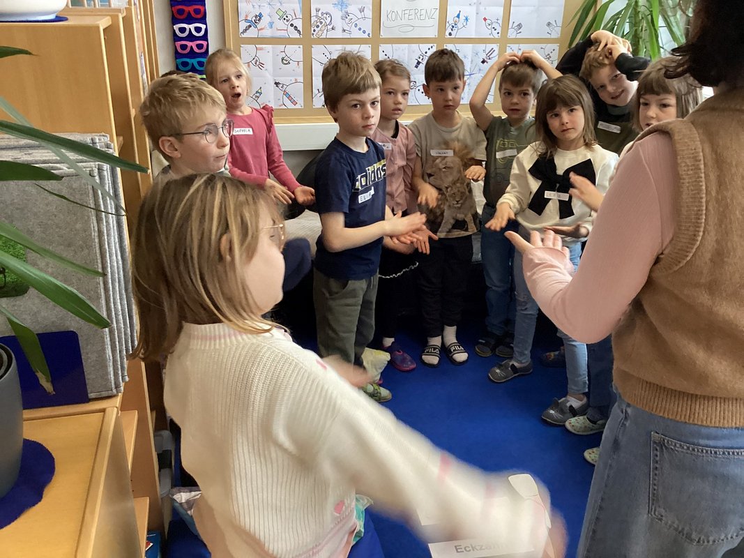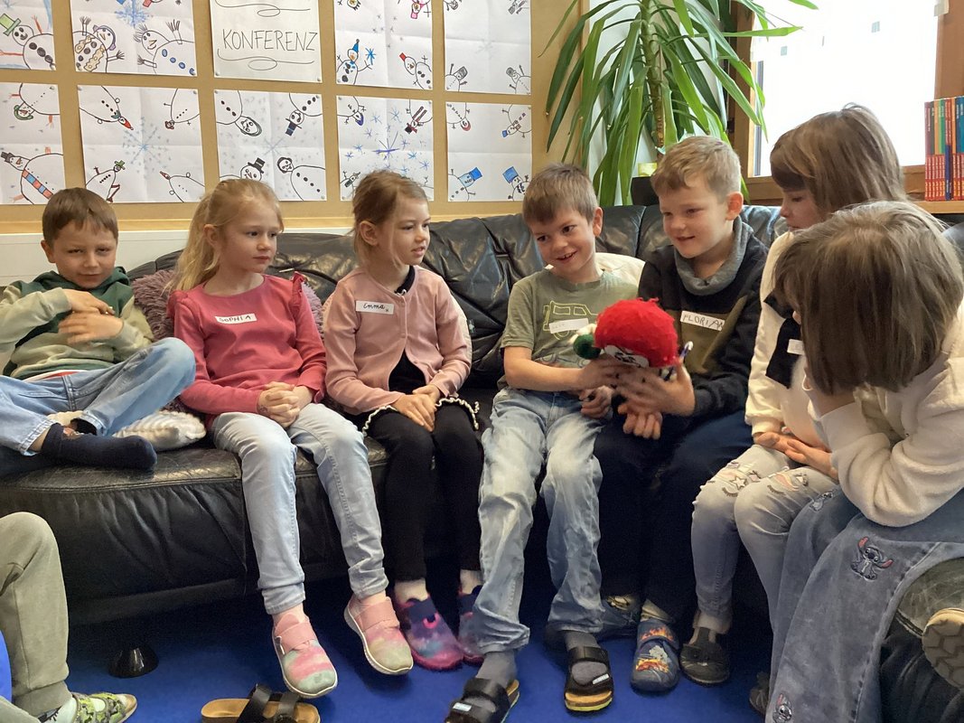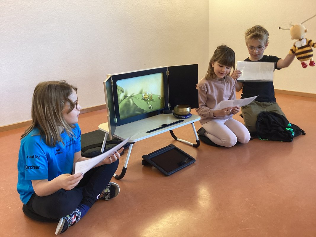 Der 10. März war ein ganz besonderer Tag für uns Schülerinnen und Schüler aus der zweiten Schulstufe! Mit klopfenden Herzen, aber voller Vorfreude machten wir uns auf den Weg in den Kindergarten – und im Gepäck hatten wir etwas ganz Besonderes: ein Kamishibai mit einer unserer Lieblingsgeschichten von der kleinen Hummel Bommel. Im “Kindi” angekommen, wurden wir schon erwartet – viele kleine Gesichter blickten gespannt zu uns hoch und manche rutschten vor Vorfreude hin und her. Wir strahlten stolz, denn schließlich kamen wir als richtige Geschichtenerzähler zu Besuch! Das Kamishibai hatte unsere Lehrerin bereits am Vortag wie eine kleine Bühne aufgebaut. Als wir uns bereit machten, scharten sich die Kindergartenkinder davor uns als der Gong ertönte, der Vorhang sich lüftete, das erste Bild eingeschoben wurde und die kleine Hummel Bommel erschien, konnte man die Begeisterung richtig spüren. Mit klaren Stimmen lasen wir drei Zweitklässler vor, wie Bommel ihren Weg findet, was sie erlebt und wie sie lernt, mutig zu sein. Die Bilder im Kamishibai leuchteten bunt, und die “Kindi-Kinder” hörten uns gespannt zu – niemand wollte auch nur eine Sekunde verpassen. Der Besuch war ein wunderschönes Miteinander: Große, die mutig vorlesen. Kleine, die begeistert zuhören. Und mittendrin die kleine Hummel Bommel, die alle mit ihrer Botschaft verzaubert. Eine Mission voller Mut, Freundlichkeit und Vorlesezauber – ganz wie bei Bommel selbst! Wir drei machten uns anschließend wieder strahlend wie der Sonnenschein auf den Weg in unsere Klasse. Dort erwartete uns unsere Lehrerin, die mächtig stolz auf uns war und ist!