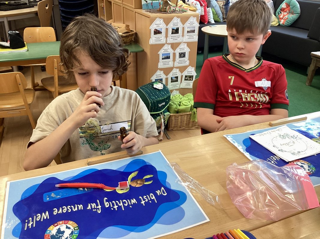 Manchmal sollen wir jemandem etwas Gutes tun, manchmal die Natur ganz genau beobachten – und manchmal heißt es: Basteln! In dieser Woche sollten wir aus Müll etwas Neues gestalten und Dinge wiederverwenden, anstatt sie einfach wegzuwerfen. So haben wir gelernt, wie wertvoll Wiederverwertung ist und dass aus alten Sachen etwas richtig Cooles entstehen kann.