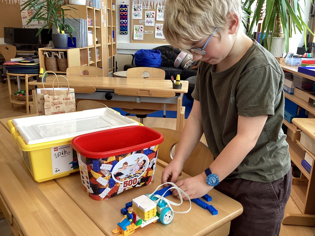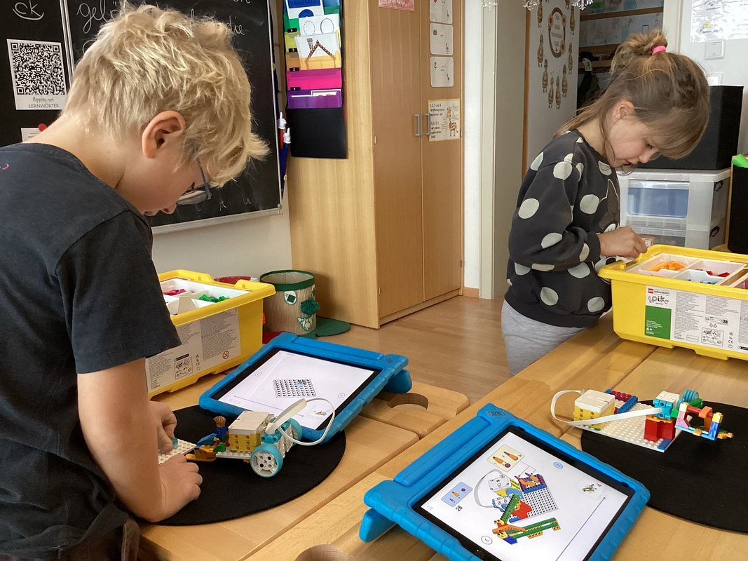 Die Schüler und Schülerinnen der 2. Schulstufe haben sich in den letzten Wochen intensiv mit LEGO® SPIKE™ beschäftigt und dabei zwei spannende und sehr unterschiedliche Projekte umgesetzt. Da wurde im Klassenraum gebaut, gelacht und ausprobiert. Mit viel Neugier, Fantasie und Teamgeist entstanden zwei liebevoll gestaltete Projekte und ein selbst gedrehtes, mit eigenen Stimmen vertontes Video, das zeigt, wie viel Freude Lernen machen kann und wie vielfältig der Einsatz von Robotik im Volksschulalter ist.