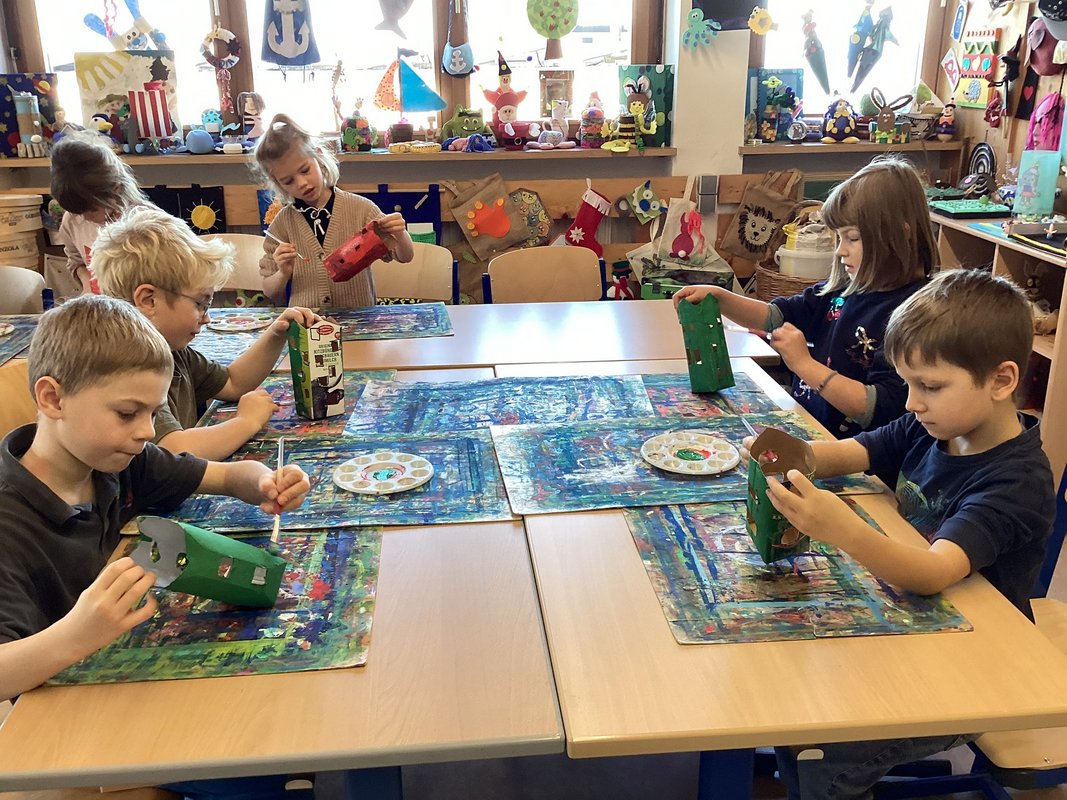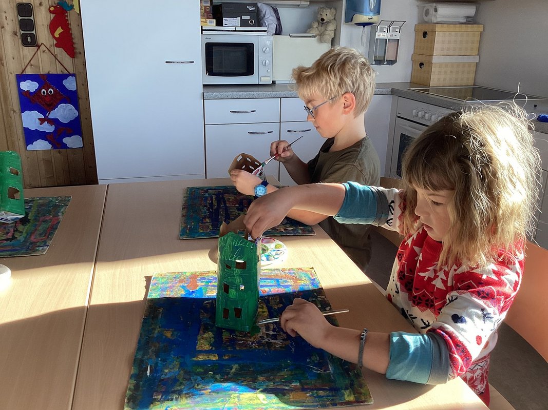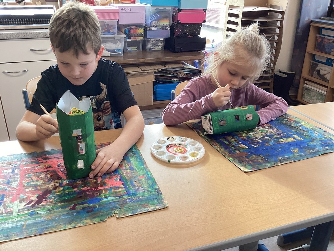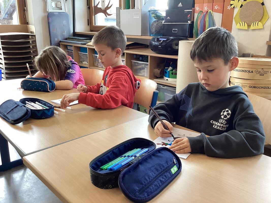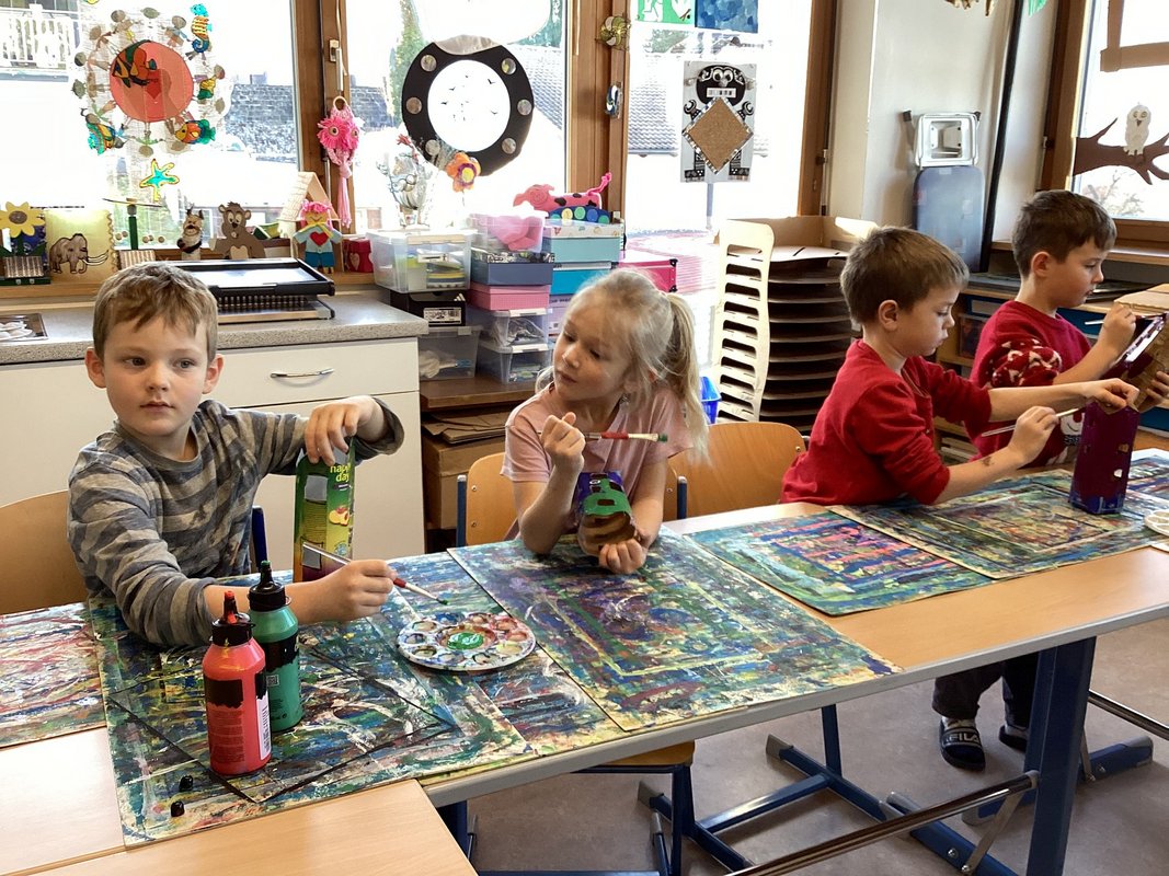 Wir Erst- und Zweitstüfler schlossen uns in kleinen Gruppen zusammen, um gemeinsam am Unterwasserprojekt zu arbeiten. Unsere Lehrerin stellte uns ihre Direktion zur Verfügung, damit wir jeden Tag und immer wieder in wechselnden Teams an der Umsetzung unserer Ideen arbeiten konnten. Beim Aufbau setzten wir uns mit den verschiedenen Aspekten des Ozeans, wie den Tieren, Pflanzen und den Herausforderungen die Meere betreffend, auseinander.