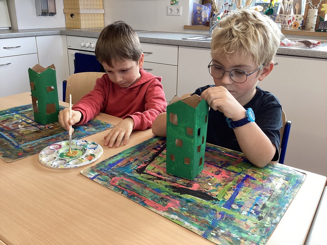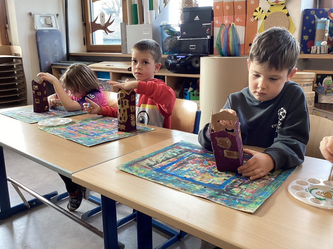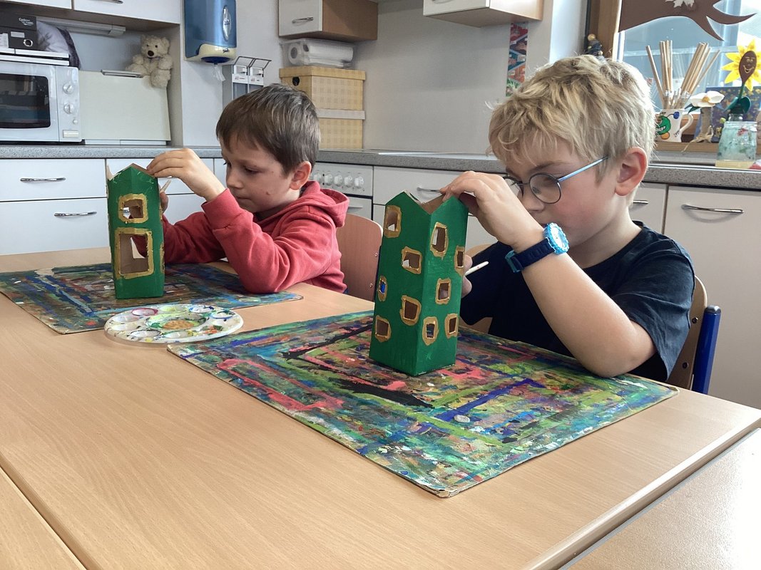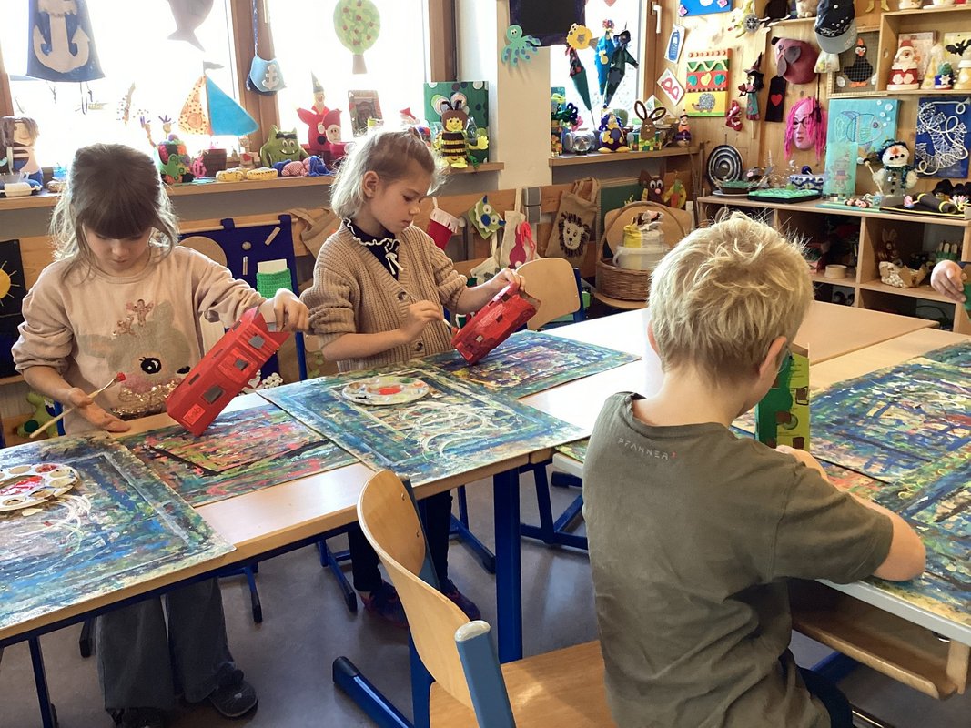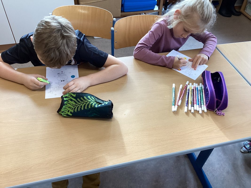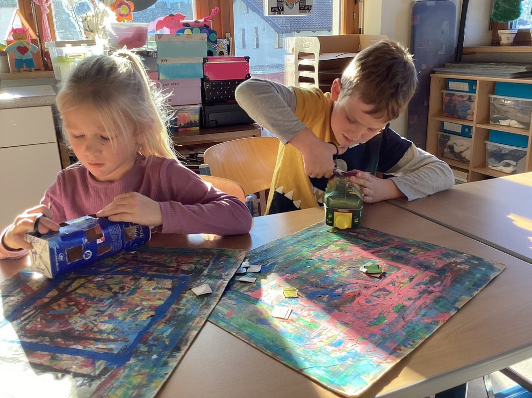 Wir Erst- und Zweitstüfler schlossen uns in kleinen Gruppen zusammen, um gemeinsam am Unterwasserprojekt zu arbeiten. Unsere Lehrerin stellte uns ihre Direktion zur Verfügung, damit wir jeden Tag und immer wieder in wechselnden Teams an der Umsetzung unserer Ideen arbeiten konnten. Beim Aufbau setzten wir uns mit den verschiedenen Aspekten des Ozeans, wie den Tieren, Pflanzen und den Herausforderungen die Meere betreffend, auseinander.