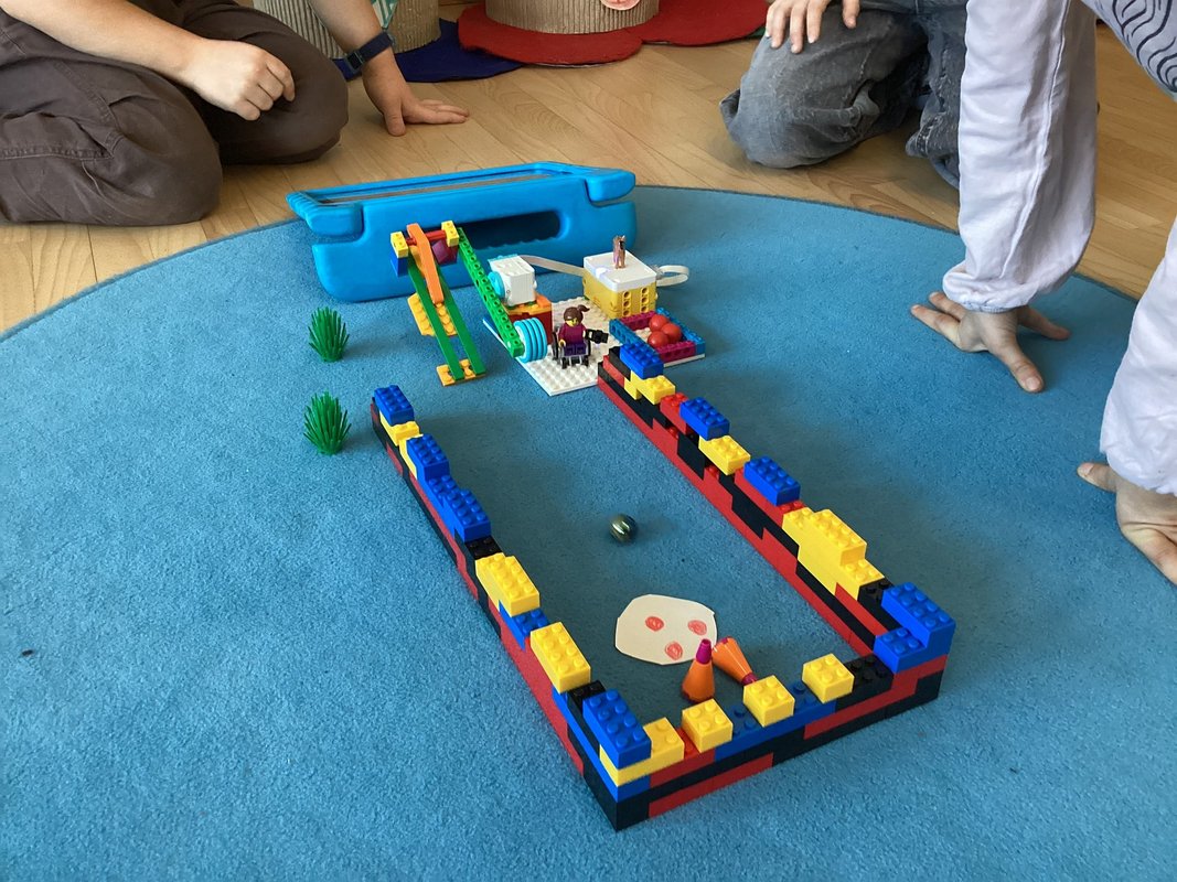 Für das zweite Projekt entschieden sich die Kinder für ein Modell, das eine einfache Bewegung ausführt – etwa einen wippenden Arm. Es sollte eine Bowlingbahn gesteuert werden, damit die kleine Anna aus ihrem Rollstuhl aus mit ihren Freunden kegeln kann - eine kleine und doch so wertvolle Szene aus dem Alltag. Während die Kids die Mechanik bauten, überlegten sie, welche Geschichte sie erzählen könnten. Im Anschluss nahmen sie mit großem Eifer einen Dialog und einen kurzen Erklärtext auf und filmten gleichzeitig ihre Arbeit. So werden die LEGO®-Modelle zum Leben erweckt und das Zusammenspiel aus Technik und Kreativität sorgt für viele Aha-Momente und jede Menge Spaß.