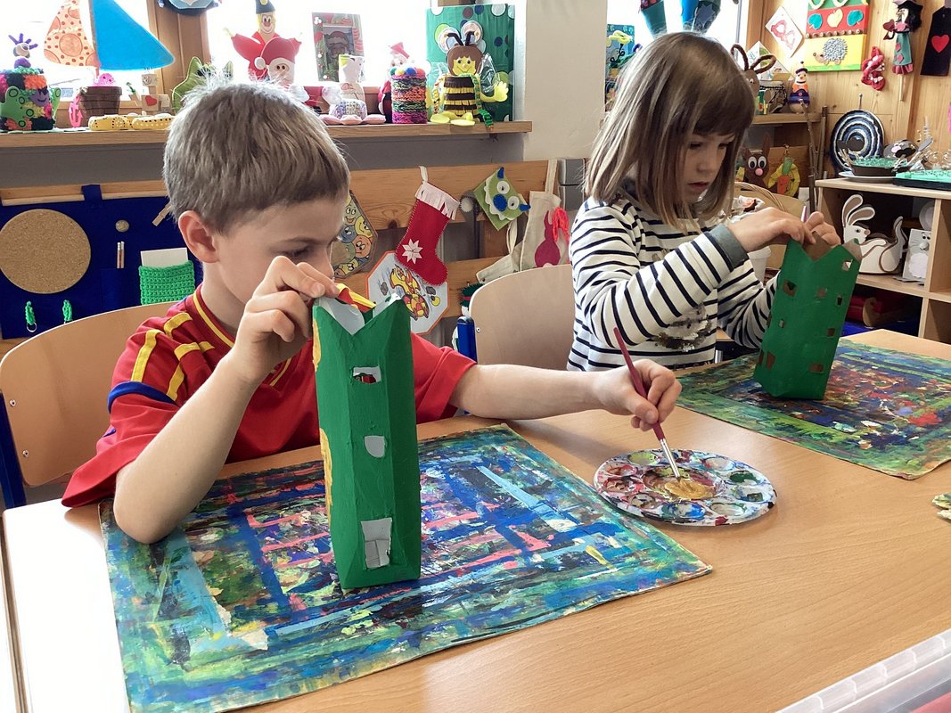 Und dann…dann bekam ich Farbe - ich wurde angemalt. Rote, grüne oder lila Wände, goldene Fensterrahmen, Punkte und sogar niedliche Sterne trug ich bald auf meiner Außenseite. Ich fühlte mich wie ein richtiges Haus – ein Weihnachtshaus!