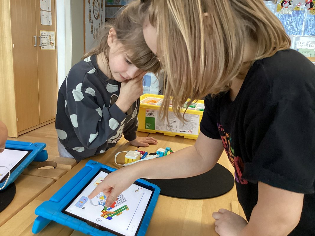 Um die Meerestiere unter Wasser genau und ganz in Ruhe beobachten zu können, da braucht es schon eine gute Tauchausrüstung oder ein U-Boot. Ein solches haben wir mit Lego Spike nach einem Bauplan zusammengebaut. Dann haben wir mit einem Programm dafür gesorgt, dass sich das U-Boot bewegt. Als das gleich auf Anhieb so gut geklappt hat, haben wir das Programm kreativ verändert, sodass das U-Boot etwa ständig in Bewegung ist - in Dauerschleife sozusagen. Wir steuerten auch die Geschwindigkeit des U-Boots und bauten die Konstruktion nochmals um, damit es sich nicht nur vertikal sondern auch horizontal im Wasser bewegen kann. Über Versuch und Irrtum kamen wir zu tollen Ergebnissen.
