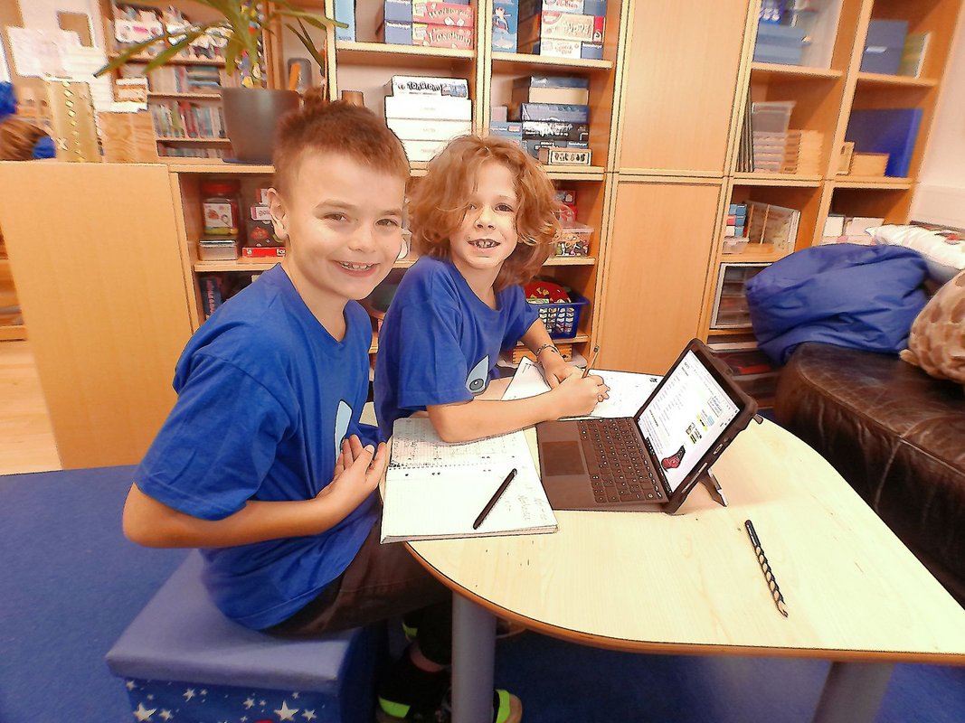 Nach dem Einstiegstag ins Thema "Digitale Welten" noch vor den Herbstferien, beschäftigten wir uns in der ersten Werkstattwoche im November mit dem Computer. Wir fanden heraus, wie dieser funktioniert und wer ihn erfunden hat. Außerdem überlegten wir zusammen, warum Computer heutzutage eine so wichtige Rolle im Beruf und auch zu Hause spielen. Zu erkunden, wie Computer funktionieren, welche Programme und Apps es gibt und wie sich ein Computer alles "merken" kann, faszinierte uns sehr. Dabei waren die Aufgaben sehr unterschiedlich und wir arbeiteten zusammen in kleinen Teams sowohl analog als auch digital an den verschiedenen Themen und trugen dann unsere Ergebnisse vor, um darüber in einen Austausch zu kommen.